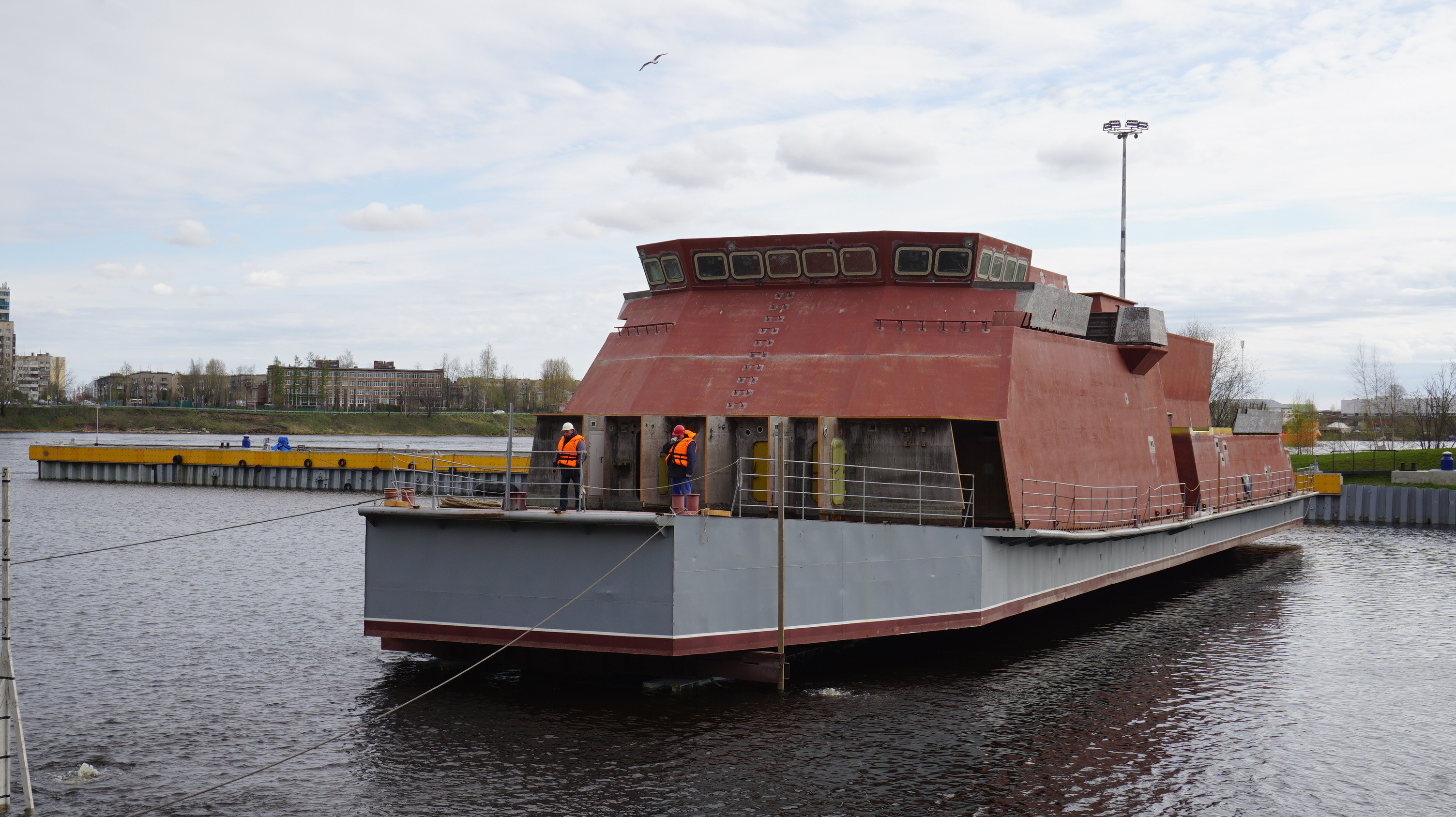 Ранее, 7 мая 2020 года, специалисты Средне-Невского судостроительного завода провели спуск надстройки на воду и подготовили её к отправке заказчику. 13 мая началась операция буксировки надстройки на Северную верфь.