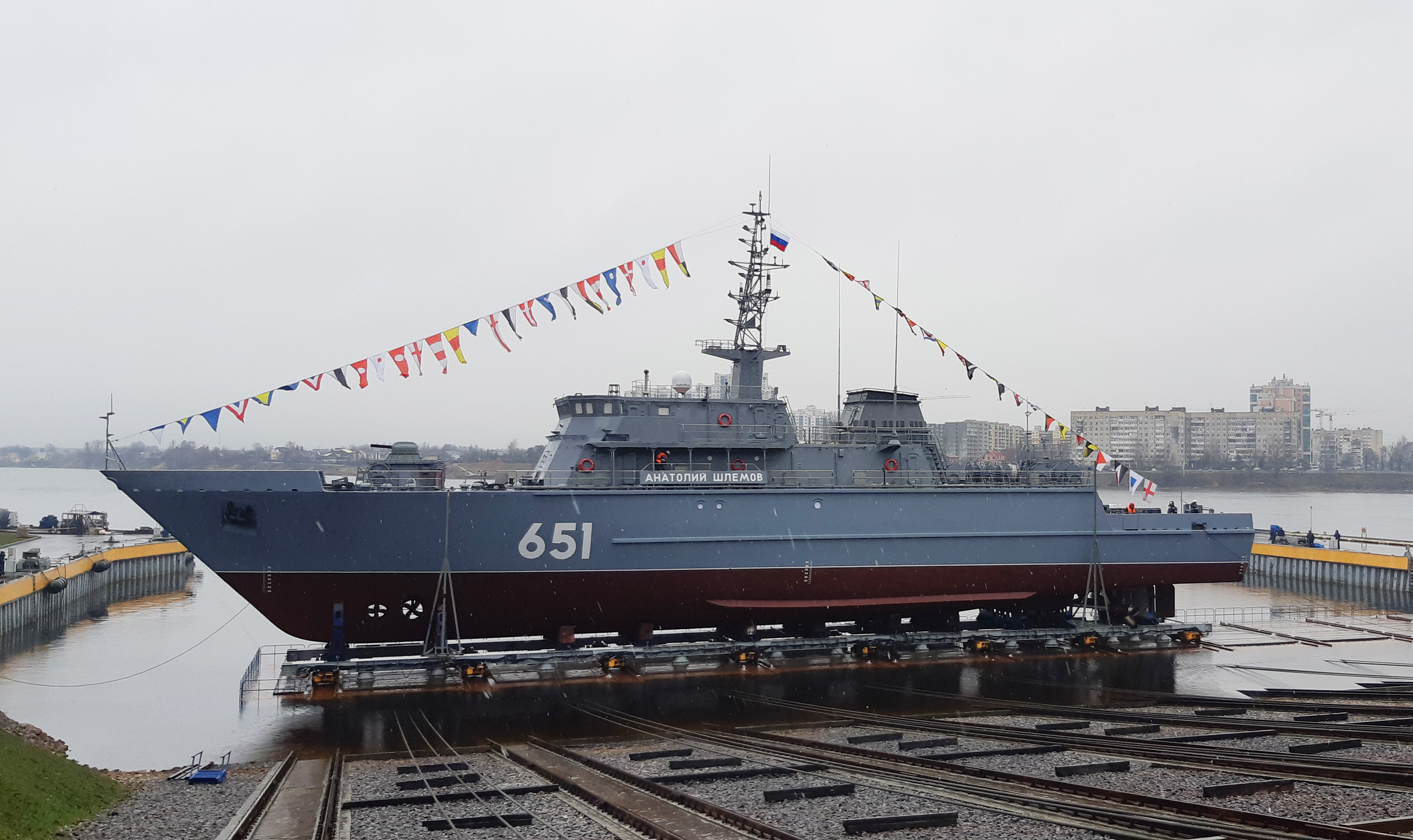 26 ноября на Средне-Невском судостроительном заводе (входит в Объединённую судостроительную корпорацию) состоялась церемония спуска на воду седьмого корабля противоминной обороны (ПМО) проекта 12700 «Анатолий Шлемов».