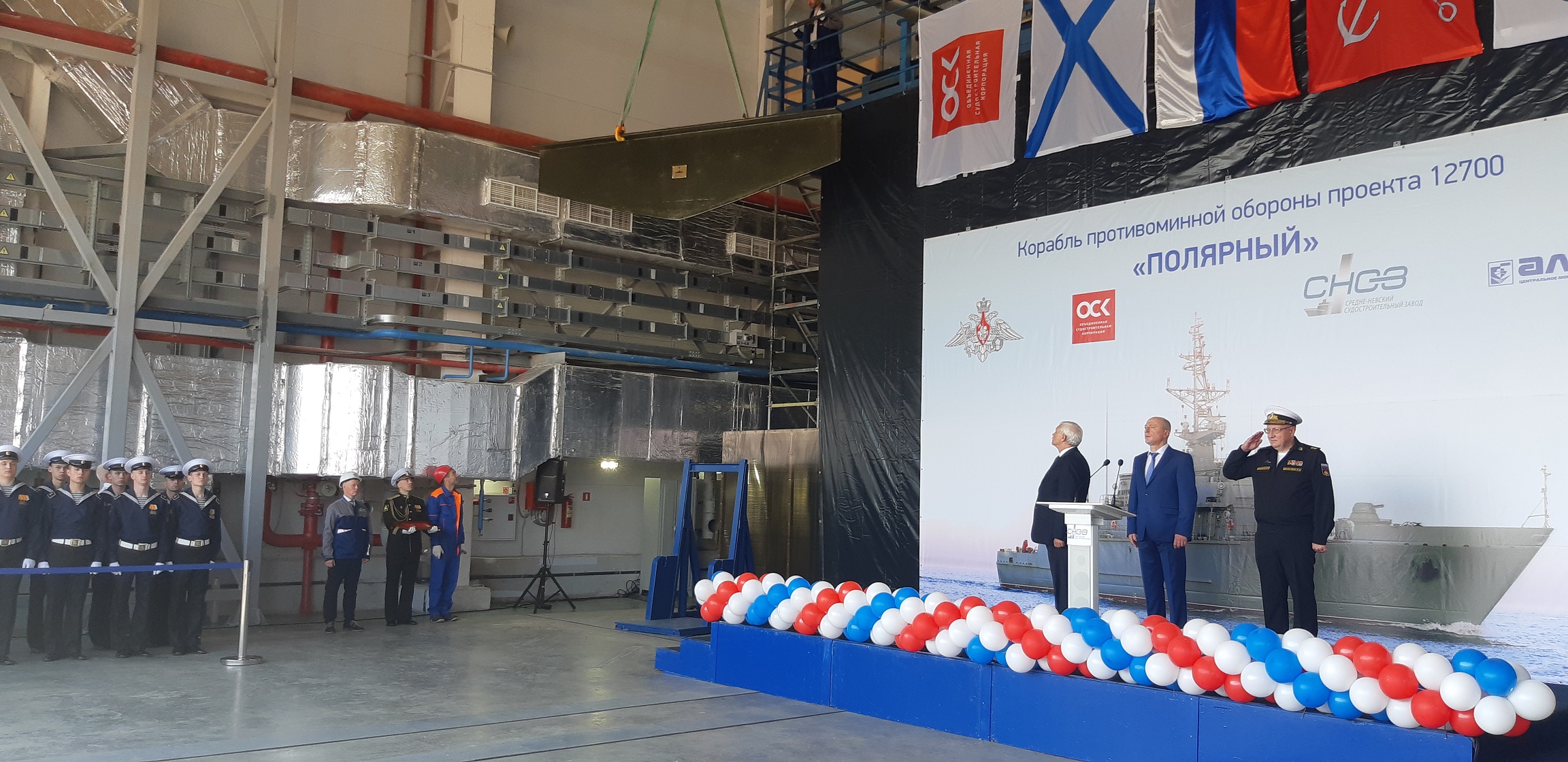 12 июня в День России на Средне-Невском судостроительном заводе (входит в состав Объединённой судостроительной корпорации) состоялась церемония закладки корабля противоминной обороны (ПМО) проекта 12700 «Полярный».