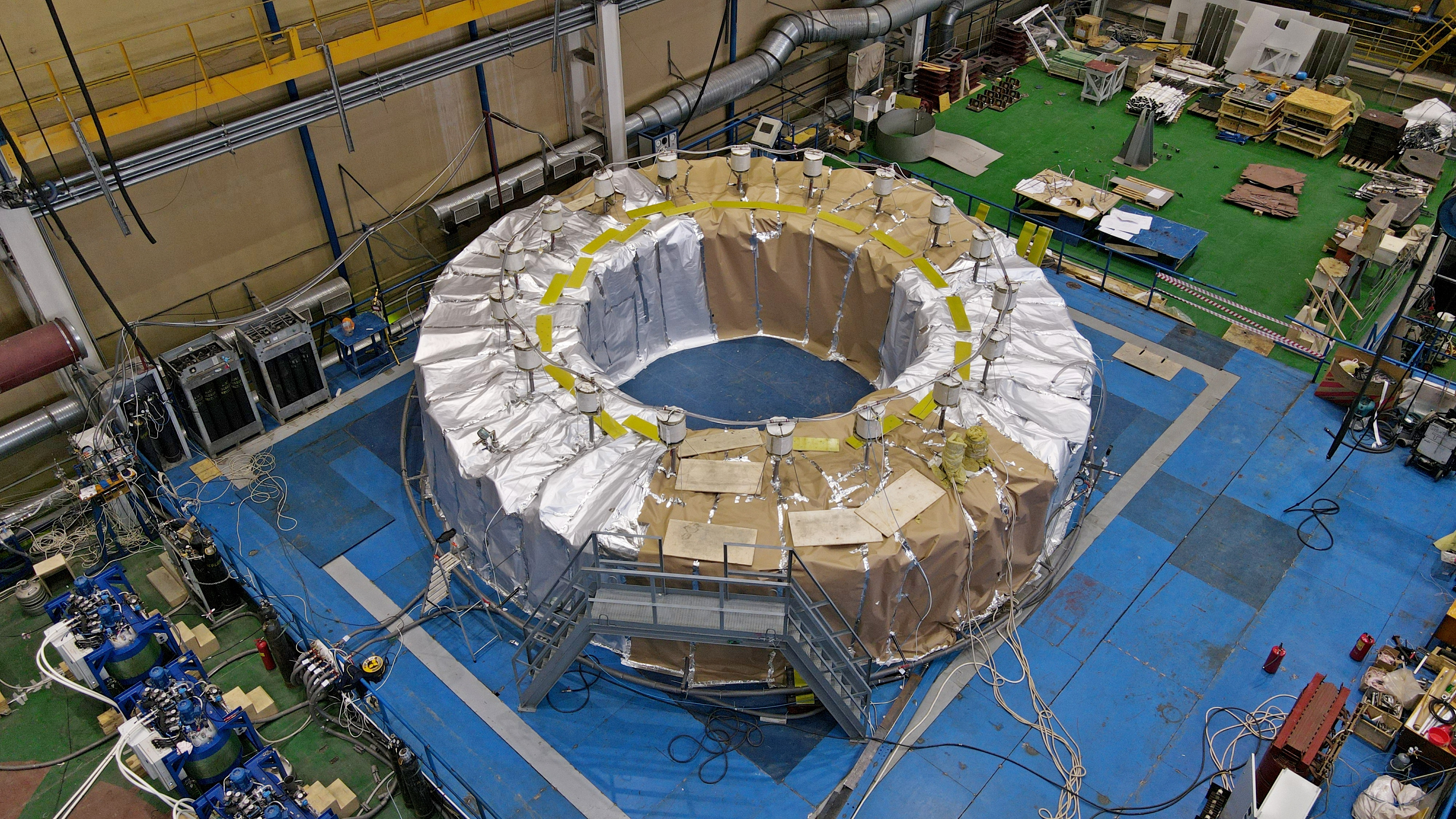 Катушка PF1, девять метров в диаметре и массой 200 тонн, является одной из шести катушек полоидального поля в магнитной системе, которая служит для удержания плазмы в реакторе ИТЭР. Катушка – крупногабаритный сверхпроводящий магнит, основой которого являются восемь сверхпроводниковых двухзаходных галет.