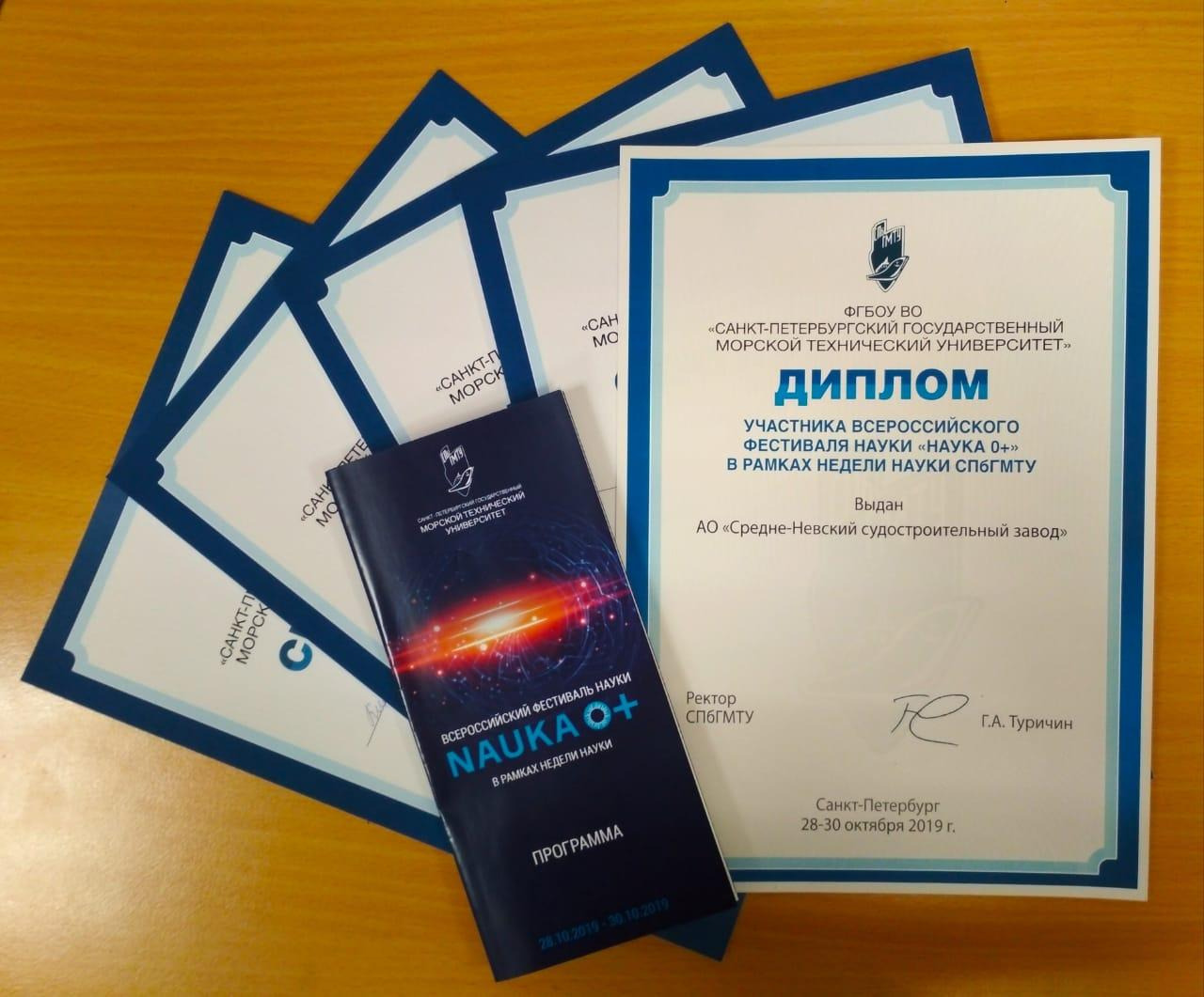 Семь молодых специалистов Средне-Невского судостроительного завода (входит в Объединённую судостроительную корпорацию) приняли участие в Всероссийском Фестивале Науки «NAUKA 0+», прошедшем с 28 по 30 октября в Санкт-Петербургском государственном морском техническом университете.